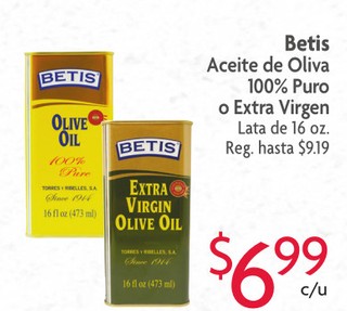 Betis Aceite de Oliva 100% Puro o Extra Virgen Lata de 16 oz.