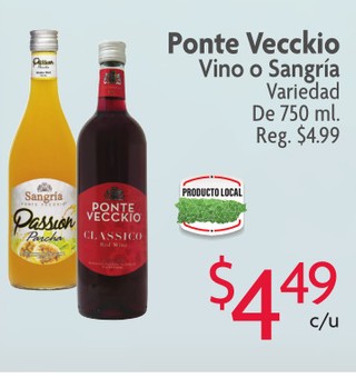 Ponte Vecckio Vino o SangrÃa Variedad De 750 ml.