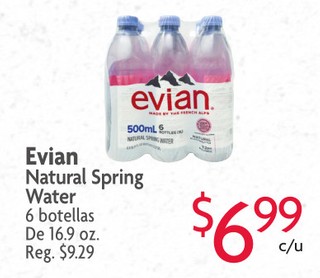 Evian Natural Spring Water 6 botellas De 16.9 oz.