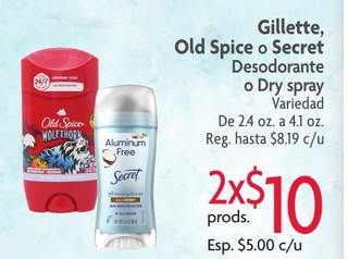Gillette, Old Spice o Secret Desodorante o Dry Spray Variedad De 2.4 oz. a 4.1 oz.