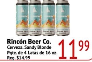 rincón beer cerveza. sandy blonde pqte. latas reg.