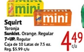 mini squirt toronja sunkist orange. regular .up. caja latas reg. $c/u