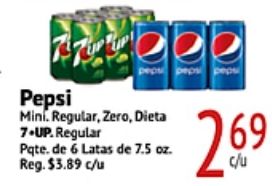 pepsi mini regular zero, dieta .up. pqte. latas reg. $c/u