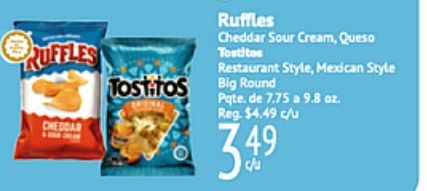cruffles tostitos cheddar ruffles sour cream queso restaurant style, mexican style round pate reg. $c/u