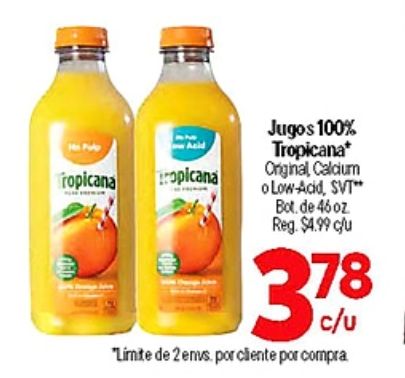 acid tropicana ropicana jugos tropicana* original calcium low-acid svt** botde reg. "limite envs. cliente compra.