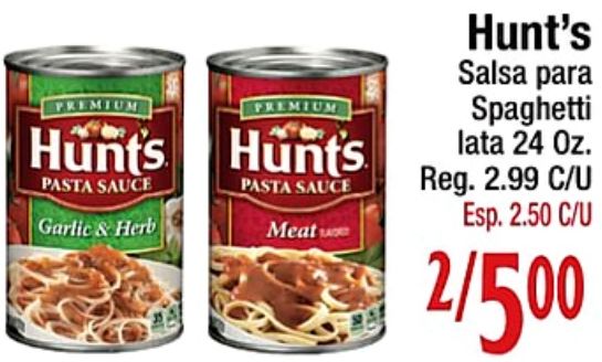 premium hunt's pasta sauce garlic herb meat salsa spaghetti lata reg. esp.