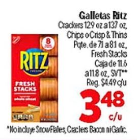 ritz fresh stacks wara galletas crackers chips ocrisp thins pqtede caja reg. incluye snowflales, cracles bacon garlic