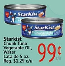 starkist chunk tuna vegetable water lata reg. $c/u light
