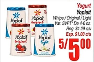 yoplait original light yogurt whips/original/light svpt reg. esp. $c/u