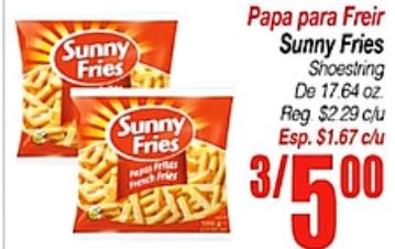 sunny fries frie french papa freir shoestring $c/u esp.