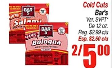 cotto salama classic cold cuts bar's svpt bologna reg. $cju esp.