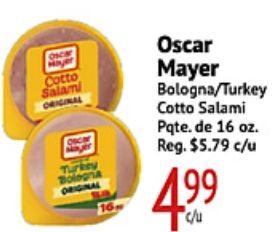 oscar hayer cotto salam original bologna mayer bologna/turkey salami pqte reg. $c/u