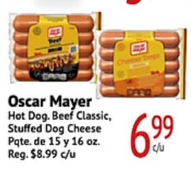 oscar mayer beef classic stuffed cheese pqte. reg. $c/u