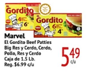 gordito marvel beef patties cerdo, pollo, cerdo caja reg. $c/u