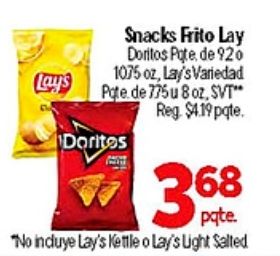 snacks frito doritos pate lay's variedad svt" $pqte. pate. incluye kettle light salted