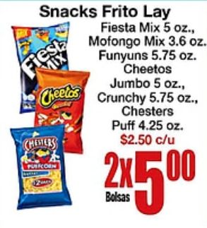 snacks frito fiesta mofongo fiest funyuns cheetos jumbo crunchy chesters puricorn puff $c/u xbolsas