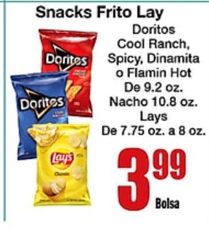 snacks frito doritos cool ranch dorites spicy, dinamita lay's flamin nacho lays bolsa
