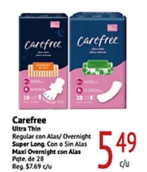 carefree ultra thin regular alas/ overnight super long alas maxi pate. reg. $c/u