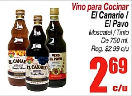 canae canario vino payo cocinar canario/ pavo moscatel/tinto reg. $c/u