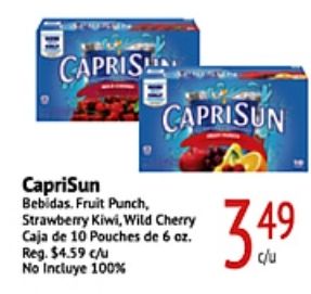 caprist caprisun bebidas fruit punch strawberry kiwi, wild cherry caja pouches reg. $c/u incluye