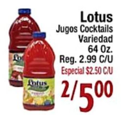 lotus jugos cocktails variedad reg. especial $c/u