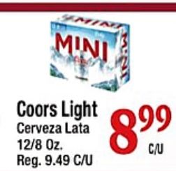 mini coors light cerveza lata reg.