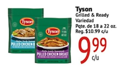 tyson pulled chickenb chicken breast grilled ready variedad pqte reg. $c/u