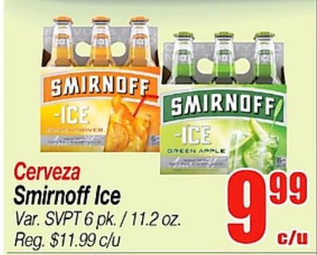 smirnoff -ice river cerveza green apple svpt pk./. reg. $c/u