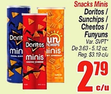 dorit doritos chips inis minis macho cheese cheddaf snacks sunchips/ cheetos/ funyuns svpt* reg. $c/u