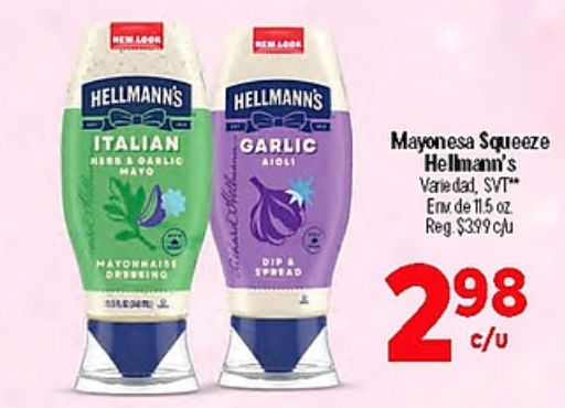 look hellmann's italian hers carlic mayo mayonnaise drssking garlic aioli spread mayonesa squeeze variedad svt" reg.