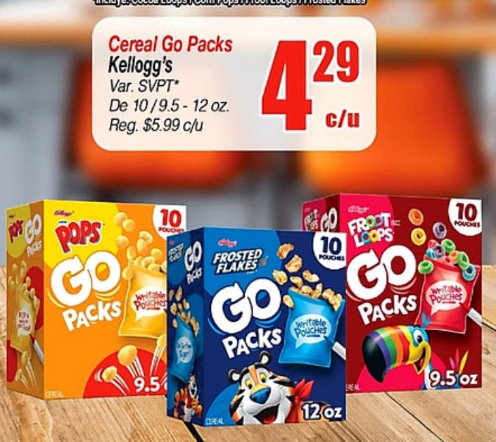 cereal packs kellogg's svpt* reg. $c/u ceral pops pouch fouches froot loops frosted flakes pouches writable
