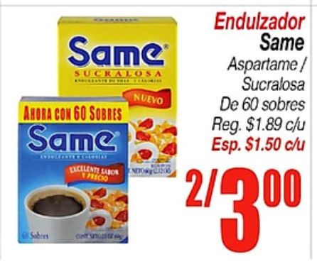 same sucralosa sobres excelente sabor precio endulzador aspartame/ $c/u esp. /sobres