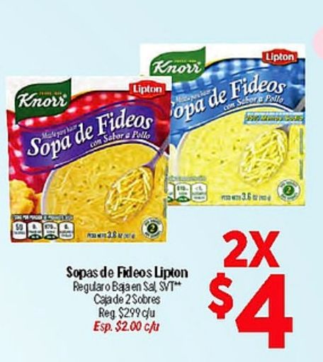 knorr lipton sabor pollo sopa fideos sopas regularo baja caja sobres $clu $c/u