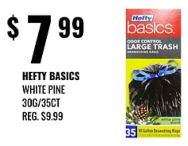$hefty basics white pine $helty basics. goor control large trash allon drawstring bags