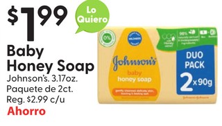 Baby honey soap Johnson's 3.17oz. Paquete de 2 ct.