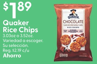 Quaker Rice Chips 3.03oz o 3.52oz. Variedad a escoger. Su selección.