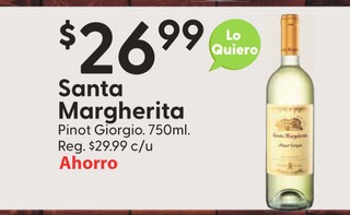 Santa Margherita Pinot Giorgio. 750ml.
