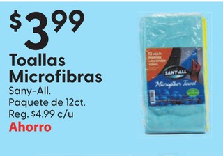 Toallitas microfibras sany-all paquete de 12 ct.