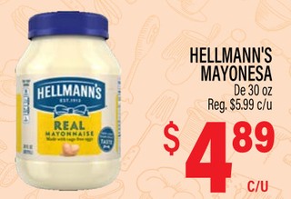 HELLMANN'S MAYONESA De 30 oz.