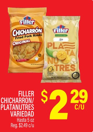 FILLER CHICHARRON/ PLATANUTRES VARIEDAD Hasta 5 oz.