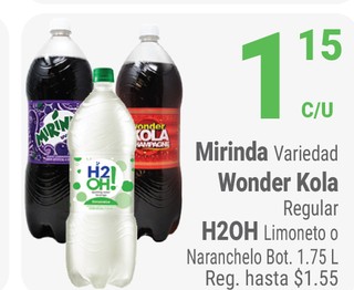 Mirinda Variedad Wonder Kola Regular H2OH Limoneto o Naranchelo Bot. 1.75 L