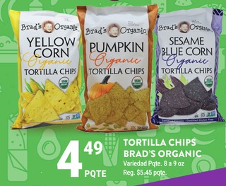 TORTILLA CHIPS BRAD'S ORGANIC Variedad Pqte. 8 a 9 oz.