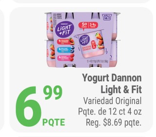 Yogurt Dannon Light & Fit Variedad Original Pqte. de 12 ct 4 oz.