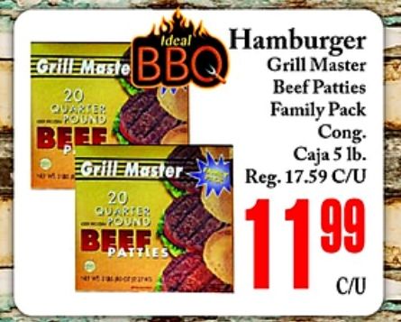 ideal hamburger grill maste master quarter pound beee beef patties family pack cong caja reg.