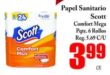 scott comfort plus premium softness papel sanitario mega pqte rollos reg.