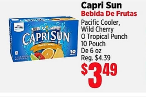 caprisun capri bebida frutas pacific cooler wild cherry tropical punch pouch