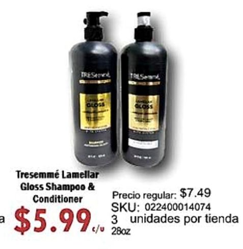 gloss tresemmé lamellar shampoo conditioner precio regular: $sku: $unidades tienda