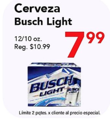 cerveza busch light reg. $busch lĂmite pqtes. cliente precio especial.