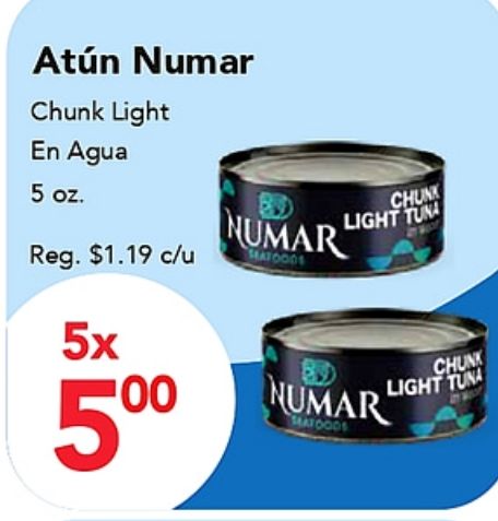 atĂșn numar chunk light agua reg. $c/u seatooos tuna seatoods