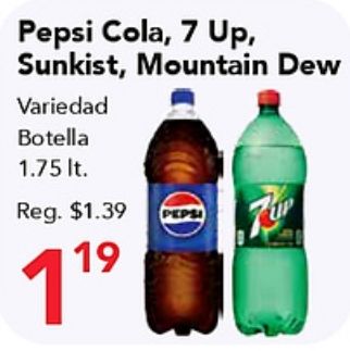 pepsi cola sunkist, mountain variedad botella reg. $peps